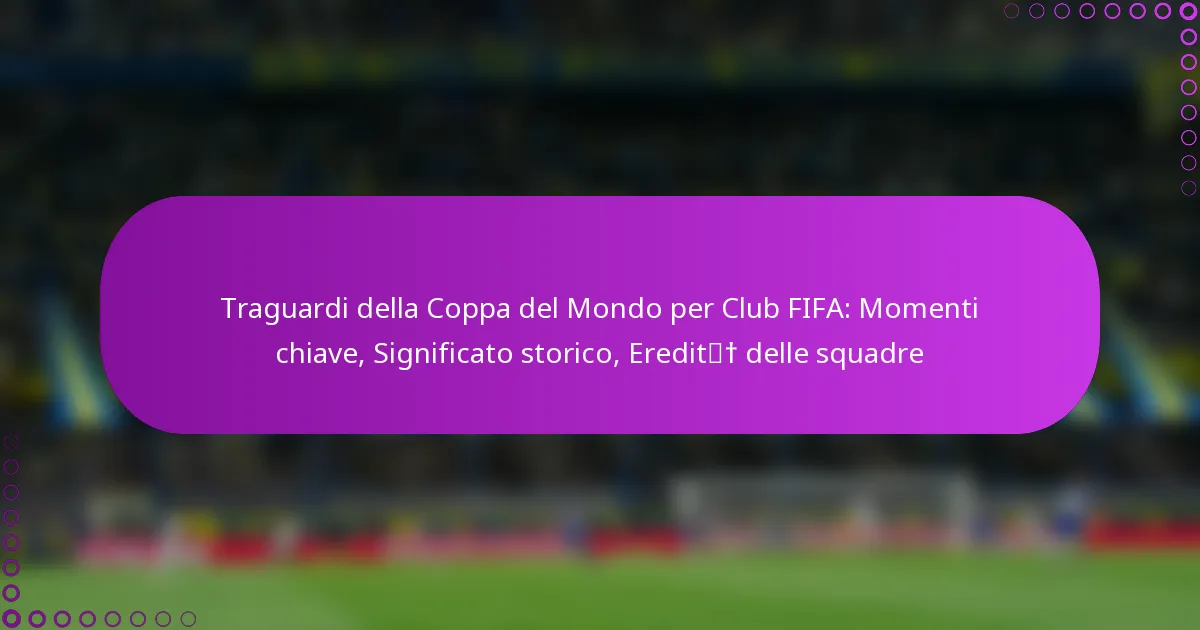 La Coppa del Mondo per Club FIFA è diventata un evento fondamentale nel calcio internazionale, mettendo in mostra i migliori club del mondo e segnando momenti chiave che definiscono l’eredità del torneo. Con la sua ricca storia di partite iconiche e sorprese, la competizione non solo eleva le reputazioni delle squadre, ma influisce anche sul panorama più ampio della governance calcistica e del gioco internazionale.