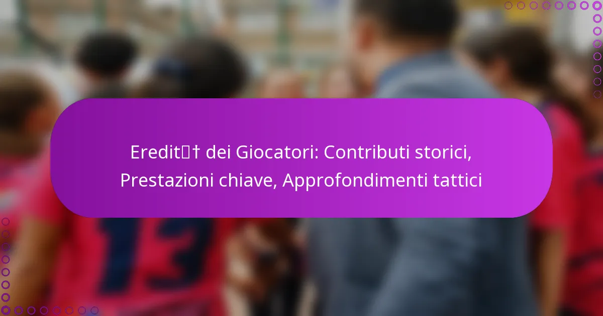 Eredità dei Giocatori: Contributi storici, Prestazioni chiave, Approfondimenti tattici