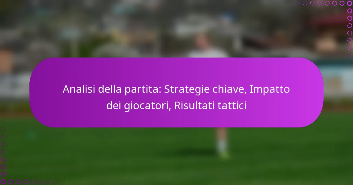 Analisi della partita: Strategie chiave, Impatto dei giocatori, Risultati tattici