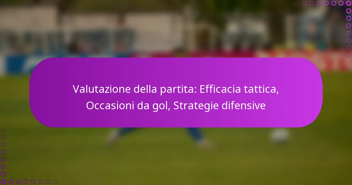 Valutazione della partita: Efficacia tattica, Occasioni da gol, Strategie difensive