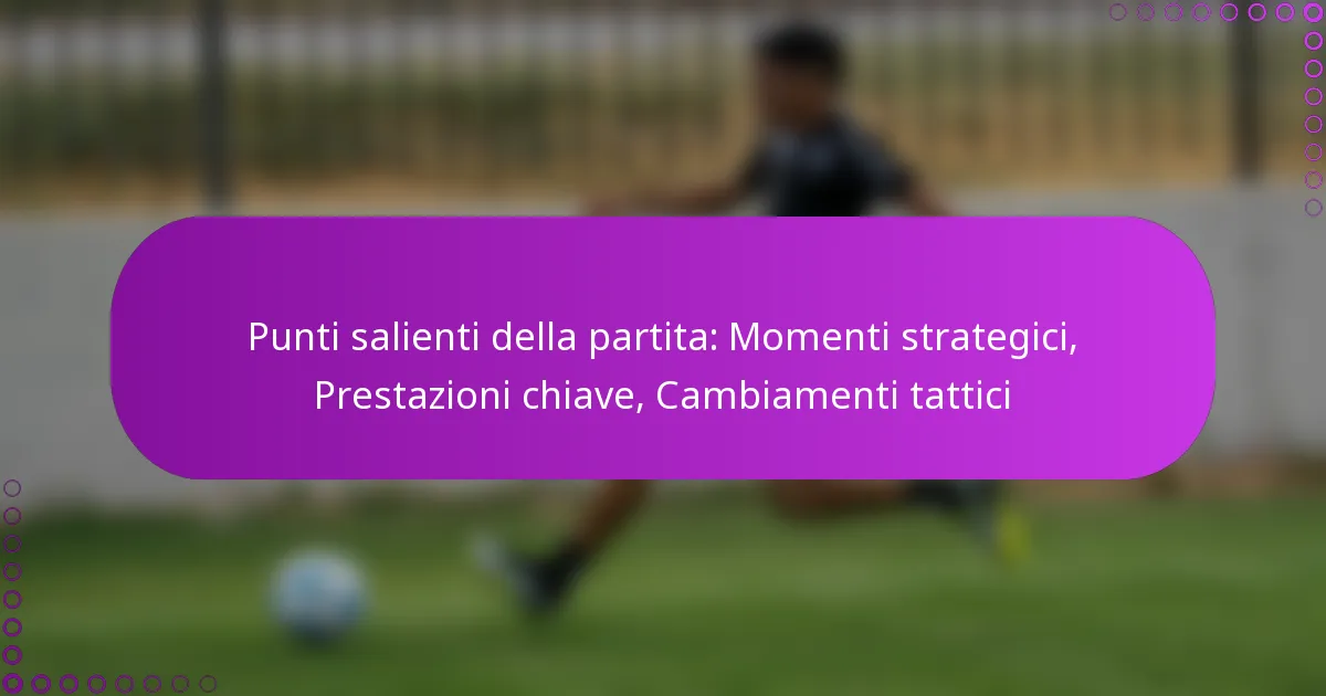 Punti salienti della partita: Momenti strategici, Prestazioni chiave, Cambiamenti tattici
