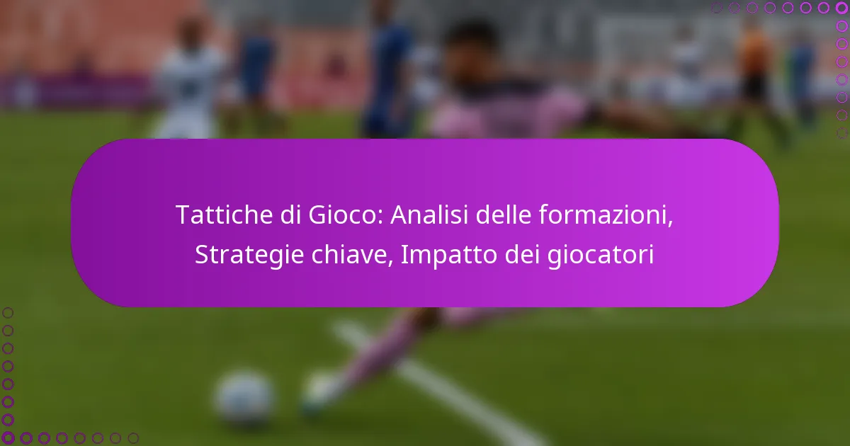 Tattiche di Gioco: Analisi delle formazioni, Strategie chiave, Impatto dei giocatori