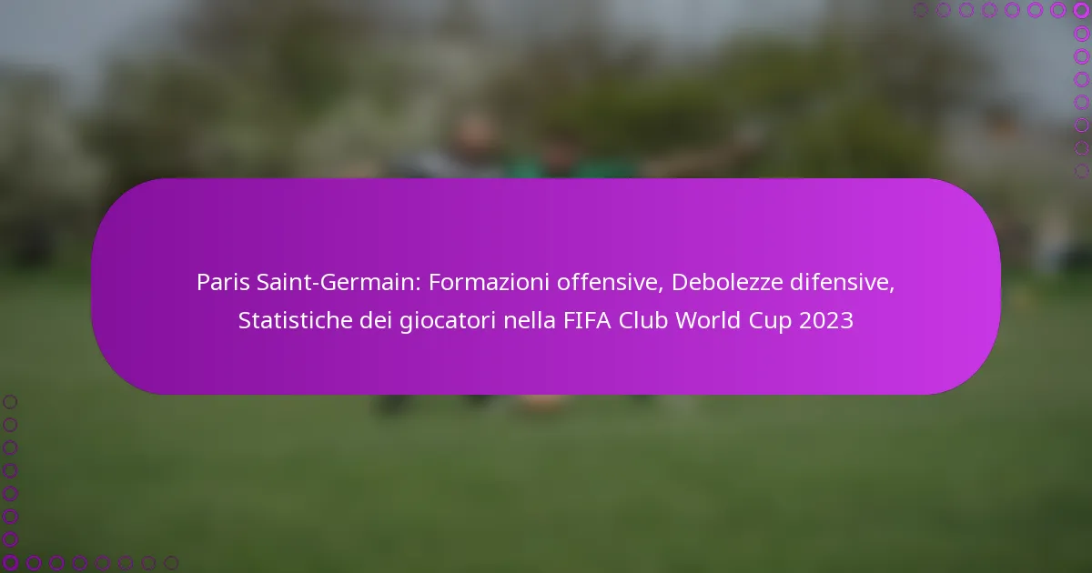 Durante la FIFA Club World Cup 2023, il Paris Saint-Germain (PSG) ha mostrato una gamma di formazioni offensive, in particolare il 4-3-3 e il 3-5-2, per massimizzare le proprie capacità offensive. Tuttavia, la squadra ha anche affrontato significative debolezze difensive, in particolare contro i rapidi contropiedi e le lacune organizzative, aggravate dagli infortuni di giocatori chiave. Analizzare le statistiche dei giocatori del torneo fornisce preziose informazioni sia sui loro punti di forza offensivi che sulle carenze difensive, illuminando l’impatto delle prestazioni individuali sul successo complessivo della squadra.