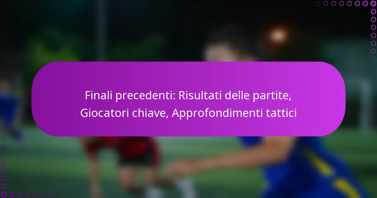 Finali precedenti: Risultati delle partite, Giocatori chiave, Approfondimenti tattici